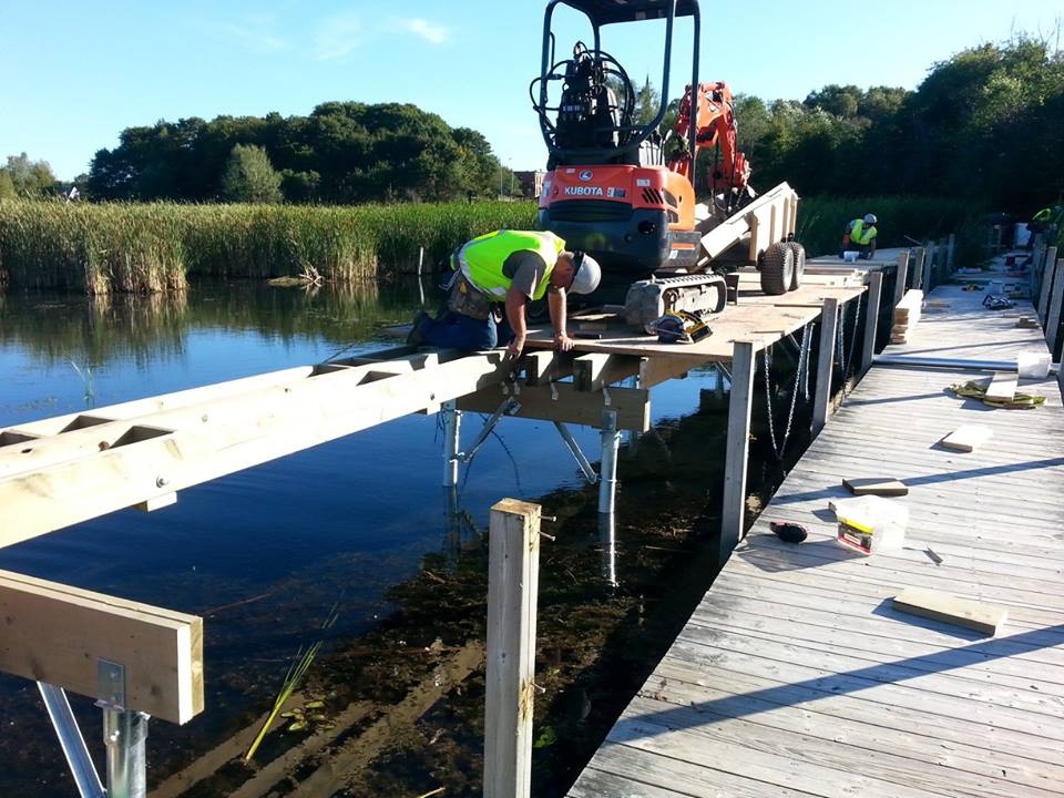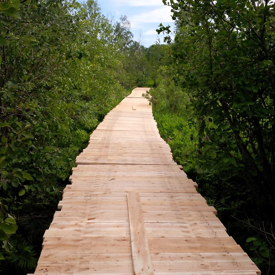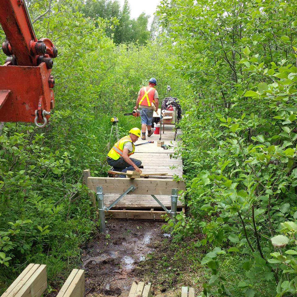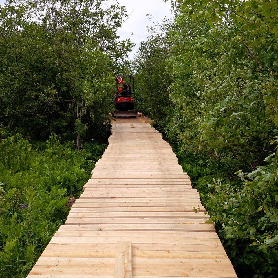 Phase 2 Sackville Waterfowl Park, New Brunswick. This section is now completed. Postech’s Bruce Fage of Cumberland Postech in Amherst has spent extensive hours preparing for this job. Environmentally it was the safest way to build this boardwalk without damaging the waterway. Bruce claims “we were not over as much open water during this phase, but not being allowed to cut any vegetation, created some interesting challenges”. Job well done Bruce!